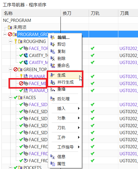 ? 在刀軌生成和并行生成時(shí)檢查工序狀態(tài)。