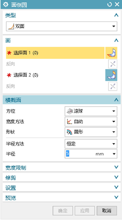 對于相交平面之間的倒圓角我們可以之間通過(guò)邊倒圓來(lái)實(shí)現,但是兩個(gè)非平行且不想交的平面想要進(jìn)行倒圓角就不能通過(guò)邊倒圓來(lái)進(jìn)行,這時(shí)我們就需要面倒圓來(lái)實(shí)現倒圓角。