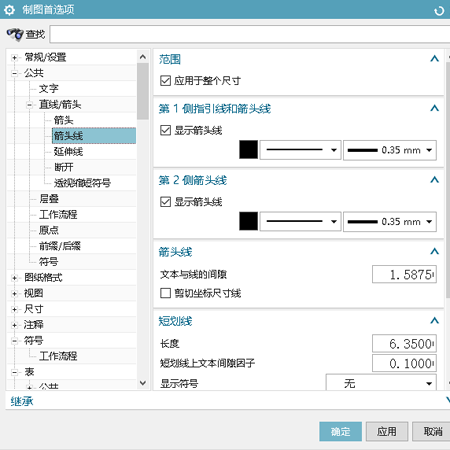 1、點(diǎn)擊:菜單→首選項→制圖,然后選擇:公共→直線(xiàn)/箭頭→箭頭線(xiàn)。